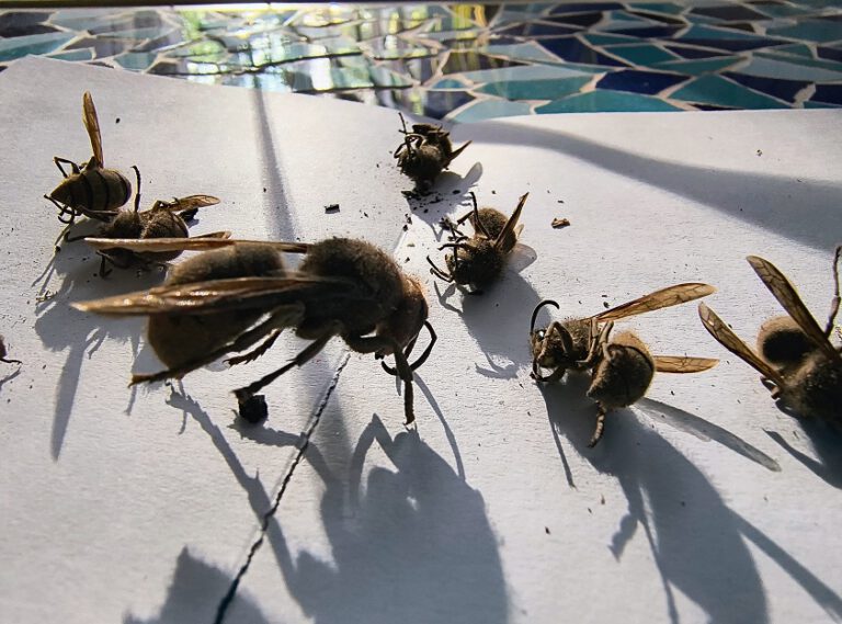 Toch was ik niet alleen, want in de houtkachel vond ik een dode mega grote hoornaar koningin met haar werksters. Omdat zij toch niet zo gezellig waren als familie Pimpelmees, vertrok ik eind juni naar Nederland om te werken en vrienden en familie te bezoeken.