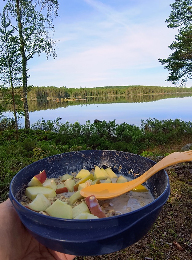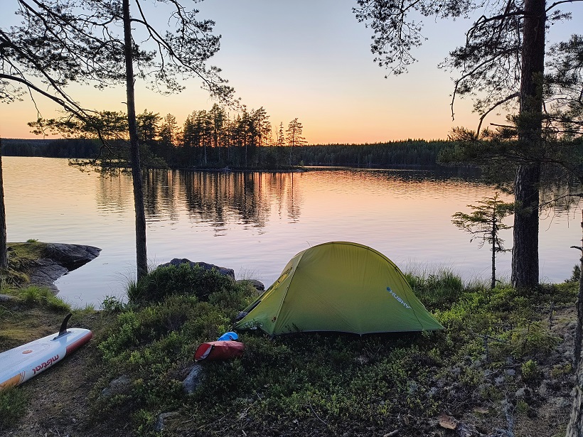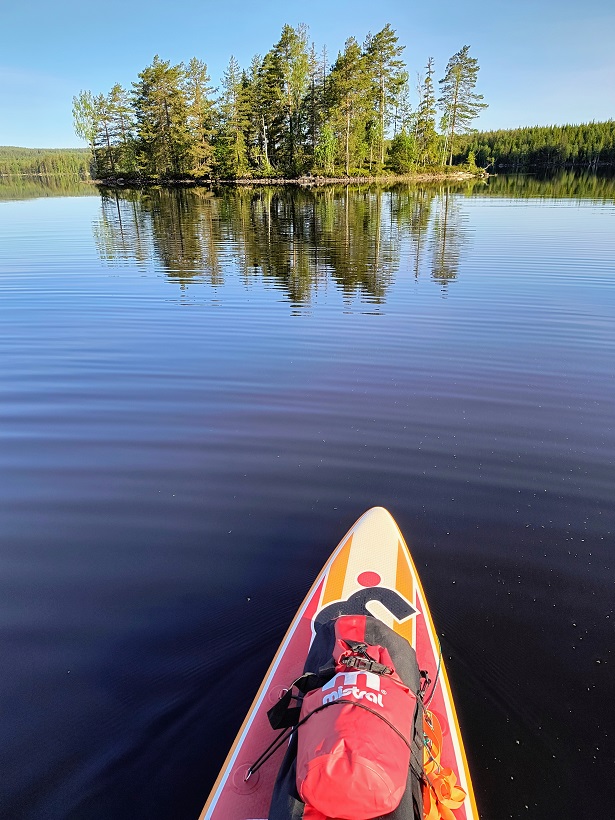Omdat alleen maar hard werken ook niet effectief is, besloot ik op een zonnige middag lekker te gaan suppen. Dat was zo verslavend dat ik – nadat  ik eerst naar huis was gegaan om te vergaderen en te eten- rond 21:15 uur weer op mijn fietsje met mijn surfkar met sup en overnachtingsspullen vertrok naar mijn favoriete meer. Daar supte ik naar ‘mijn’ onbewoonde eiland voor een overnachting in mijn tentje. De volgende ochtend ontbijtte ik op het eiland  en vertrok ik op tijd, zodat ik om half 9 weer braaf achter mijn computer zat.  Dit soort korte tripjes die eigenlijk weinig tijd kosten, geven me zoveel energie en inspiratie,  dat ik dat eigenlijk veel vaker zou willen doen.
